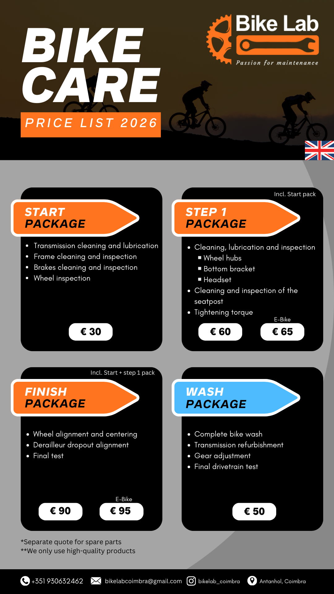 - Serviço de recolha / entrega: € 15 no perímetro de Coimbra. Fora da cidade sob orçamento